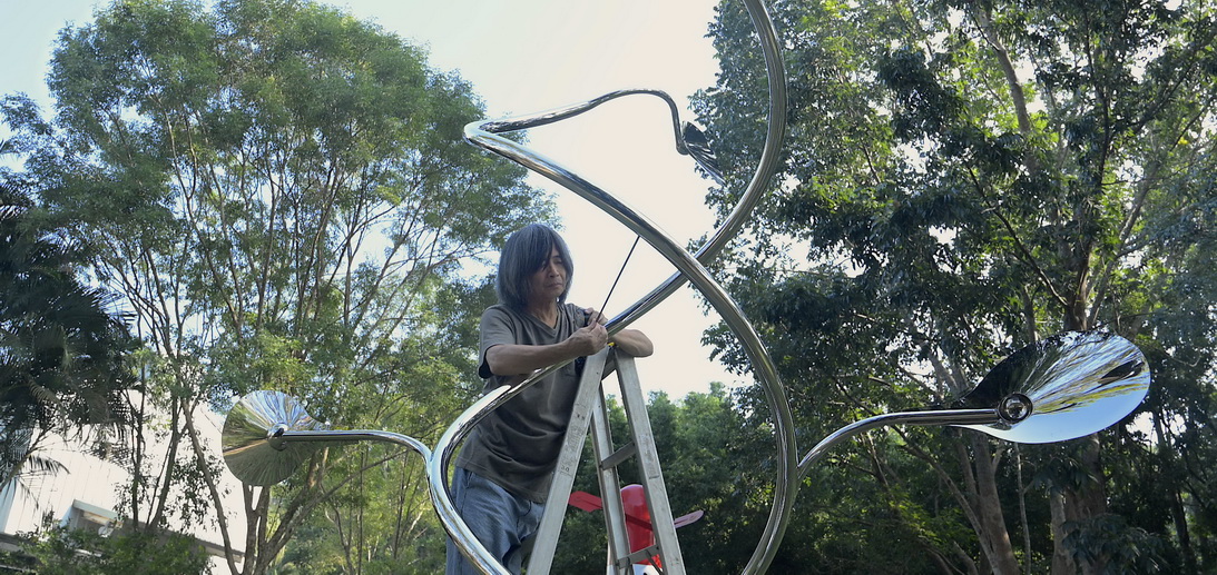 那些金屬的轉動、風的脈動與光影的閃爍,不只是作品的形體,更是他生命的節奏。那份流動,既屬於藝術,也屬於他的人生,如同雲在天際,不為形所困,隨風而行,延綿不息。即使歷經病痛與歲月的消磨,他仍以堅韌的姿態讓創作繼續前行。於他來說,藝術不只是表達,更是一種生長的方式,那份柔中帶剛的韌性,是他與世界對話的途徑,也是生命最深的形狀。